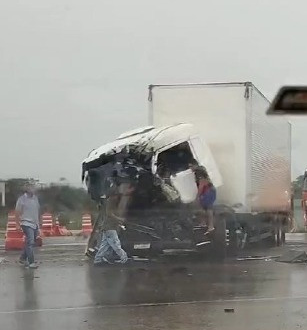 Um acidente envolvendo um caminhão e uma carreta foi registrado na manhã desta terça-feira (11), em frente ao posto Maria e José, no quilômetro 607 da BR-163, em Nova Mutum (a 242 km de Cuiabá).